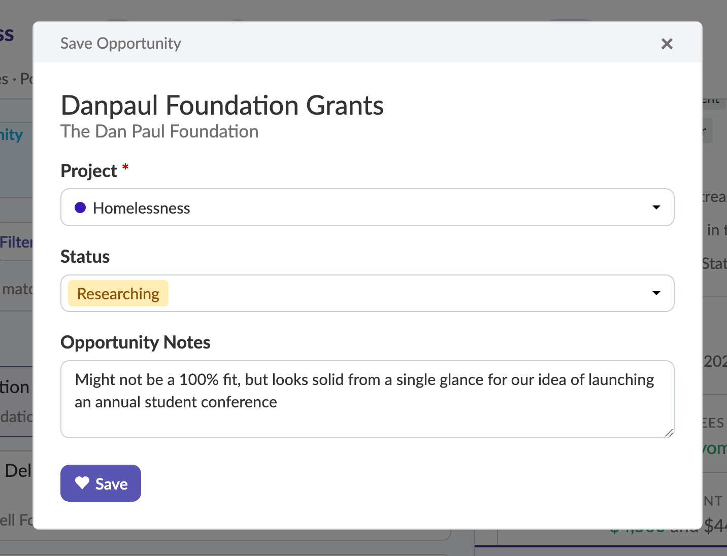 Instrumentl glossary: With Instrumentl’s Smart Grant Matching, opportunities come to you. All you have to do is share insights about your organization or program area and watch as tailored funding opportunities arrive in your inbox weekly.