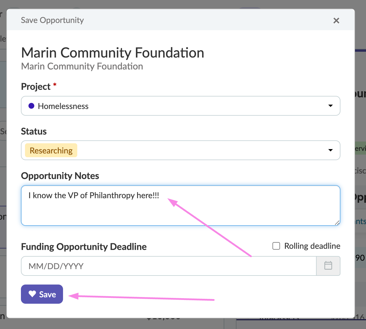 Pro tip: Before saving an opportunity to your Tracker, you can add a short note about it. This will help you prioritize further down the line.