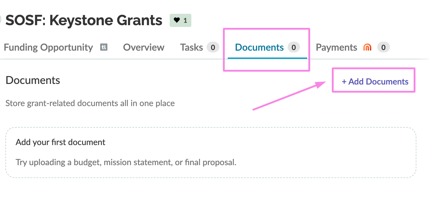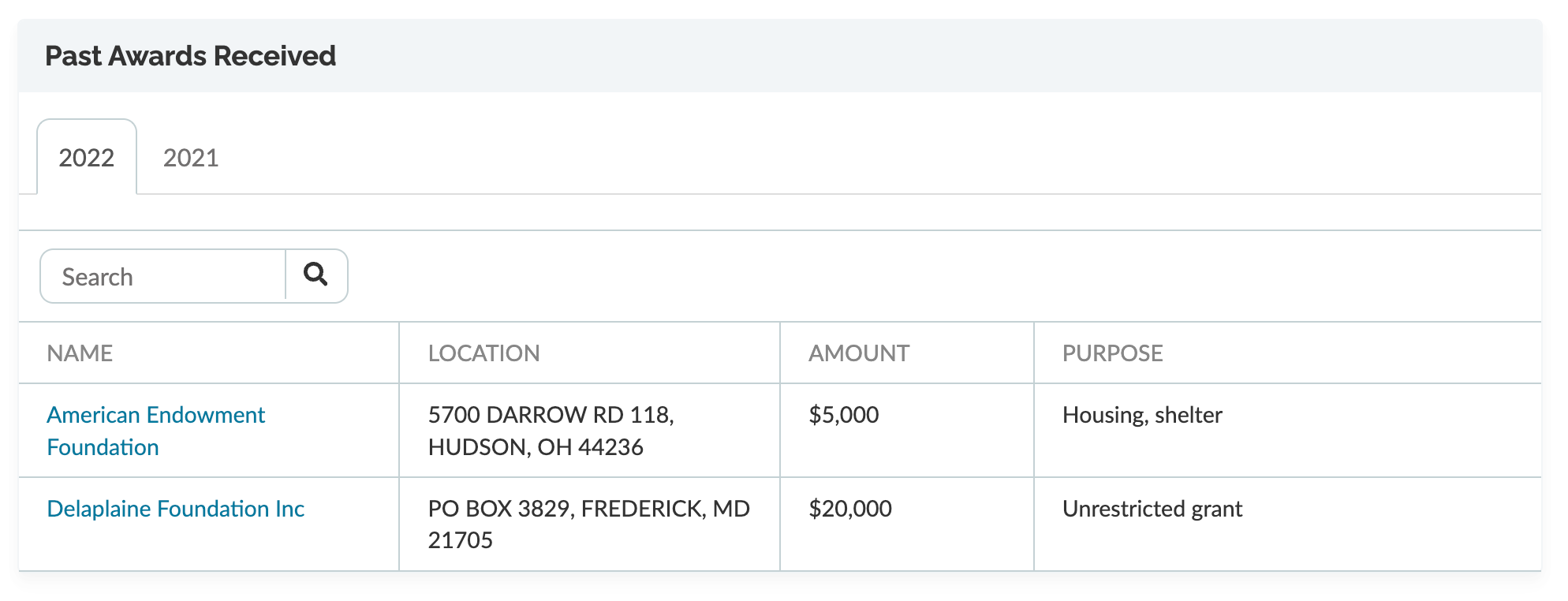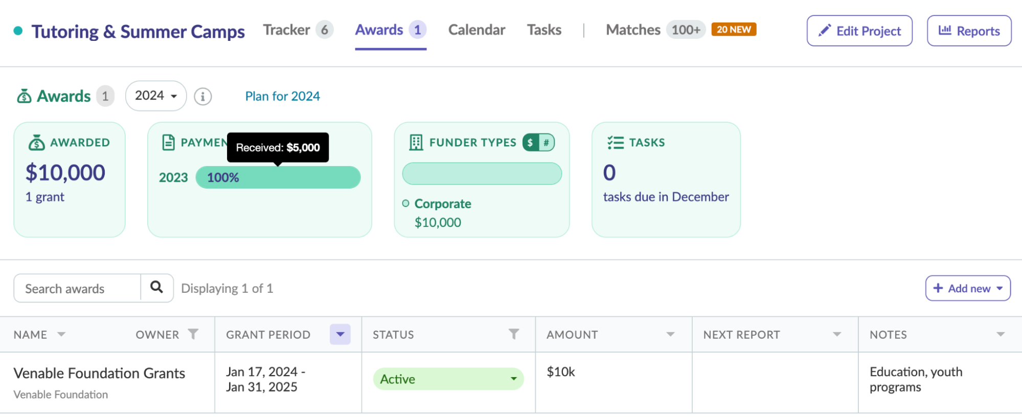 You’ll be able to see all of your awarded grants in one place by clicking into the Awards tab.