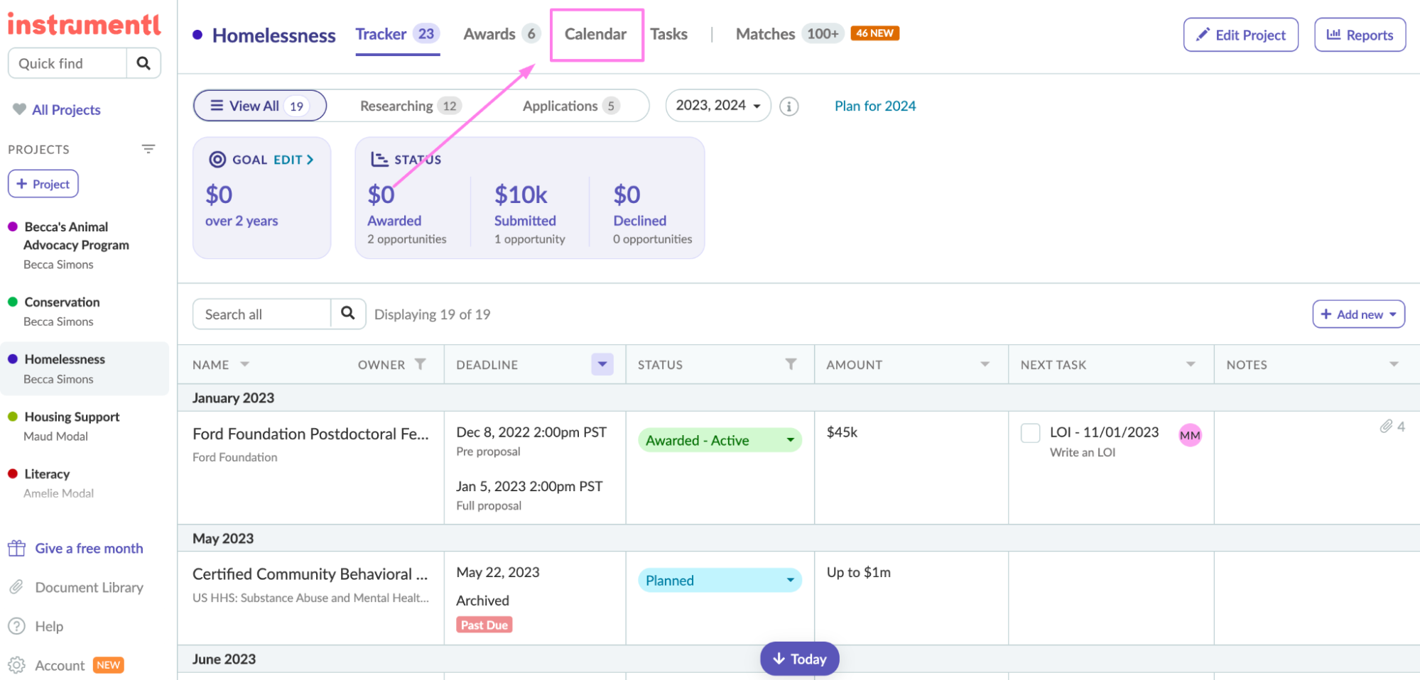 Just like yesterday, today we’re going to play pretend so that you can experience post-award grant management in Instrumentl. And why not–let’s practice the power of self-fulfilling prophecy and manifest getting the funds!