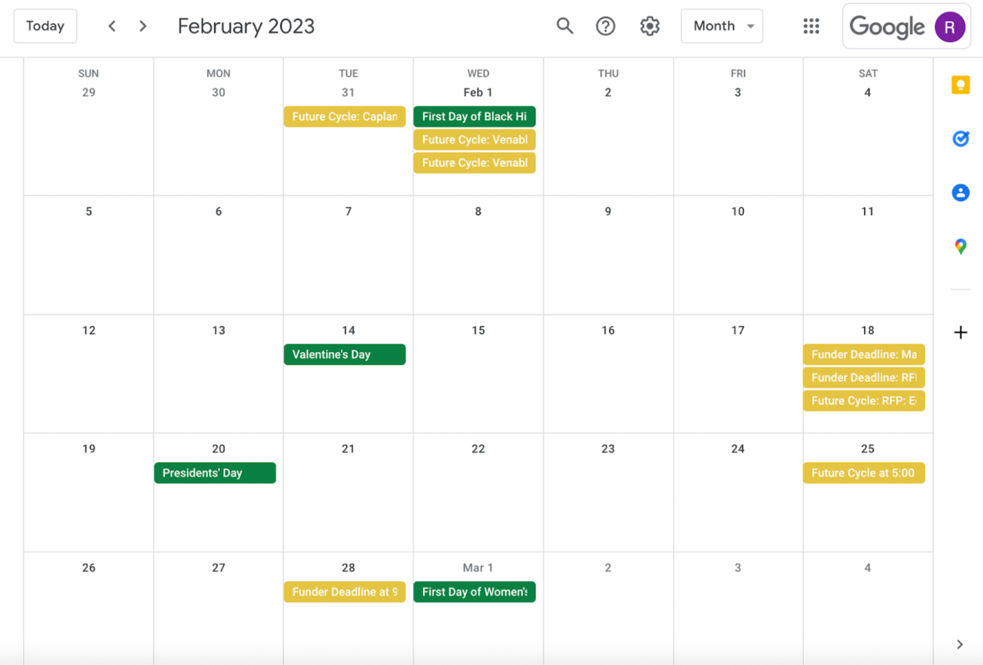 We strongly recommend you to schedule a 30-min meeting with your team members for the last day of your trial. Do it now so that you can move through your trial period meaningfully and have a set time for discussing your impressions and the quality of grant opportunities you found.