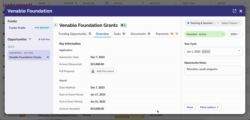 Instrumentl introduced Payments Tracking to solve for a real problem grant professionals are facing.